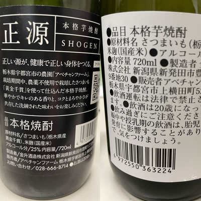 本格芋焼酎 正源 白1本箱入り(720ml×1本)